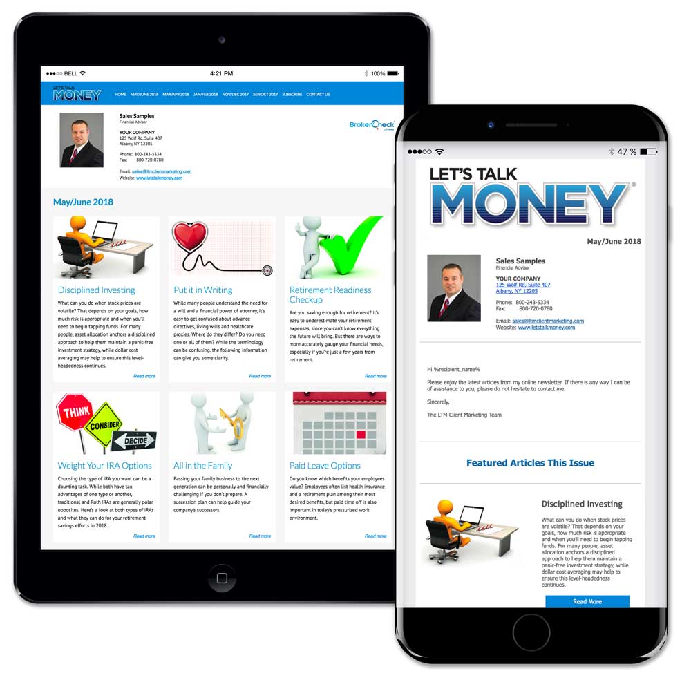 Let's Talk Money® Email Edition includes all the features of the printed version, but it's in HTML format and emailed directly to your customers.